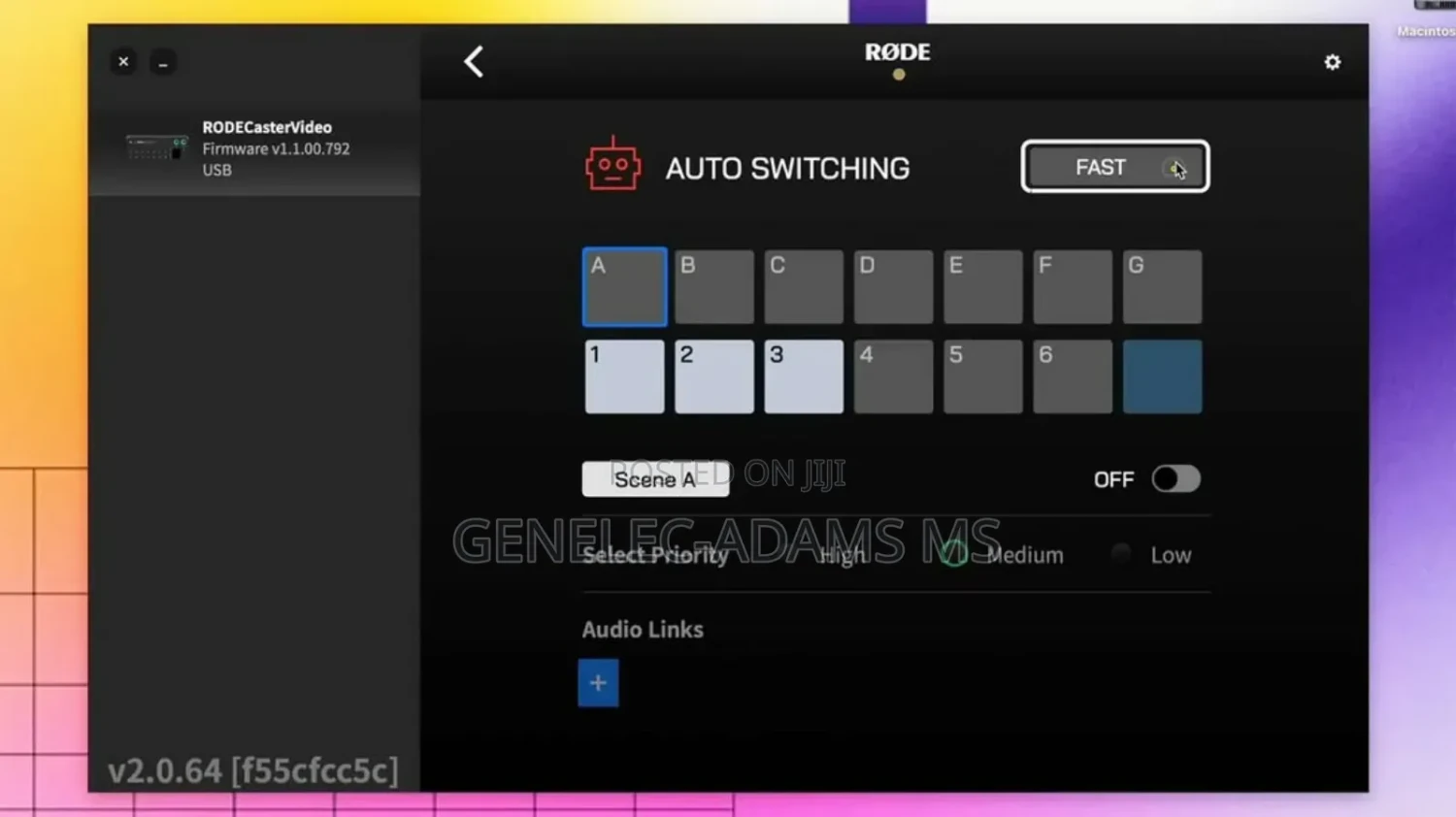 Latest powerful Video Switcher RodeCaster Video Video and Audio Production Console Direct RTMP streaming via Ethernet or WLAN Direct recording (H.264) to external USB drive) Separate ISO recording of six video sources plus programme feed) Two integrated wireless receivers for RØDE wireless transmitters Bluetooth 5.3 for stereo sources and phone calls Buttons: 7 x scene, 6 x input source, record, auto, cut, fade to black, media, overlay High-resolution 2" touchscreen Seven scenes programmable with multi-video layers, media and graphics Automatic switching of sources and scenes depending on the audio signal Automatic chroma keying Mic/Inst/Line inputs: Two XLR / 6.3 mm jack Neutrik Combo Video inputs (1080p) Great Product from Rode.