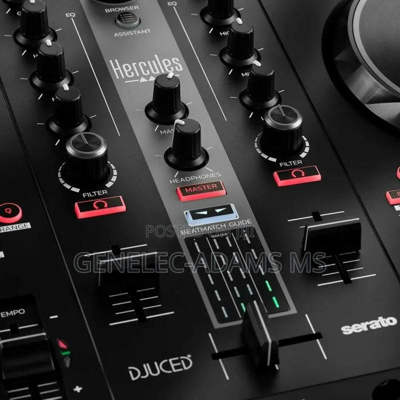 Serato dj pro hercules dj controller dj controller with built-in usb audio interface. supports music streaming services - beatport advanced, beatsource, soundcloud go+ or tidal. vinyl feel with pressure detection. 8 performance pads per deck to control 8 modes (hot cue, roll, slicer, etc.) effect rack with 2 fx knobs and dry-wet loop in/loop out buttonsmaster output: 2x (stereo) headphone output: 3.5 mm mini jack (stereo) audio resolution: 24-bit/44.1 khz beatmatch guide with intelligent music assist: built-in light guide for easy learning of beatmatching and intelligent music assistant for operation with pcs or notebooks with usb includes serato dj lite & djuced software compatible with serato dj pro), dj academy with full, built-in video tutorials and integrated interactive help, and braided usb cable.